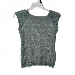 Merona Lace Cap Sleeve Top Medium Teal Sheer Floral Embroidered Romantic Mermaid