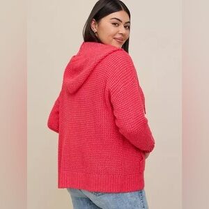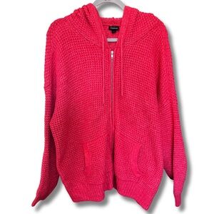 A cheery, cozy, comfy hooded zip-up sweater by Torrid. Item has been worn once or twice. Color: Berry. Size 2(2x).