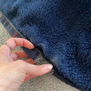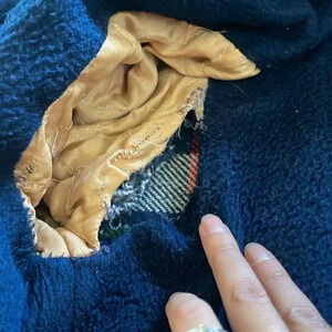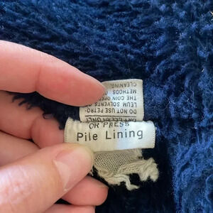This is in very used vintage condition. Some wear and pilling present, cuff buttons missing, a large hole in the sleeve lining, shearling lining is worn and thin/matted in several areas. Please see photos for all details.