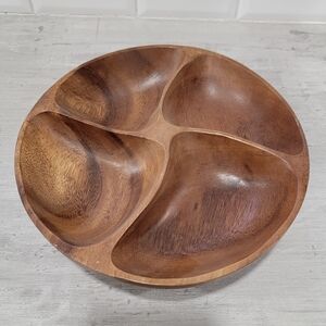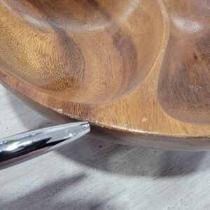 Vintage Wooden Swivel Serving Dish Divided Bowl Carved Mid-Century