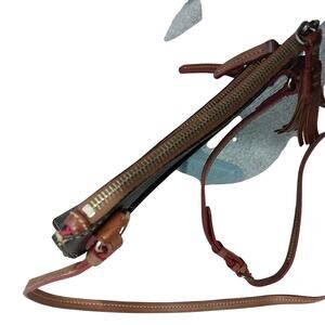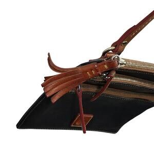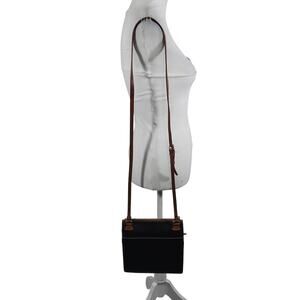 DOONEY & BOURKE! BLACK TEXTURED GENUINE LEATHER, PECAN BROWN TRIM CROSSBODY BAG!