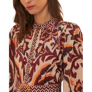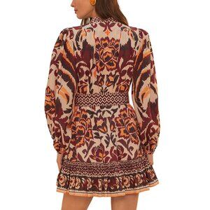 FARM Rio "Toucans Scarf Cream" Belted Mini Dress. In a cream base color, with swirls of autumnal brown, maroon, and orange accents. Size M. NWT.