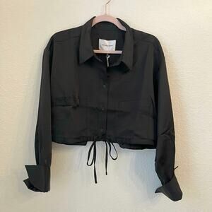 NWT The Noli Shop Milan Satin Button Up Shirt Large Black Boxy Cropped Cargo