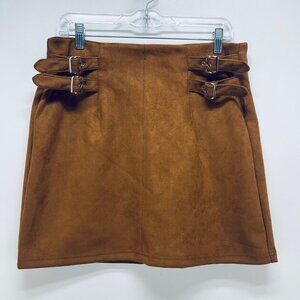 Iris Skirt Size XL Women’s faux leather suede brown with buckles Zíper