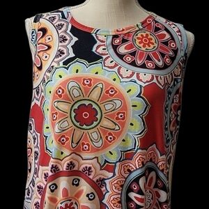 Embrace vibrant style with this colorful sleeveless dress featuring a stunning mandala pattern. Perfect for any occasion. Size large. Smoke free home.