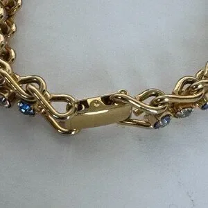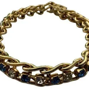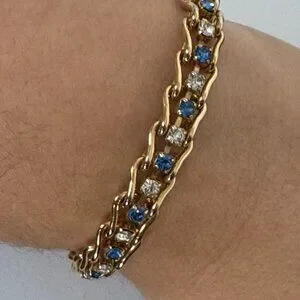 Blue White Rhinestones Tennis Bracelet Gold-Tone Fashion Jewelry