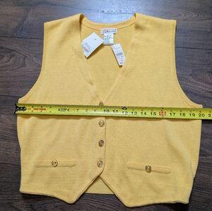 NWT Talbots Vintage Yellow Gold Button-Front Part Wool Sweater Vest Size Medium