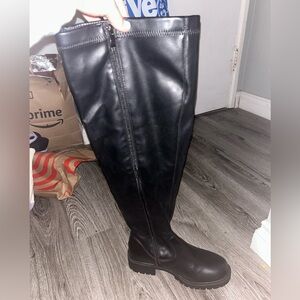 Elevate your style with these chic black over the knee boots. Perfect for any occasion, these boots offer both comfort and elegance.