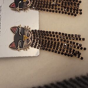 Black cat face with black rhinestone dangles.