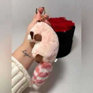 Plush Raccoon Bag Charm Keychain – Pink Faux Fur Tail Cute