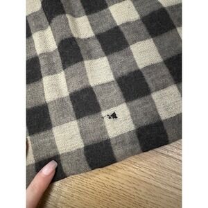 Keywords: Eileen Fisher scarf, checkered scarf, neutral scarf, plaid scarf, fringed scarf, long scarf, winter accessory, fall fashion, everyday scarf, soft scarf, oversized scarf, travel scarf