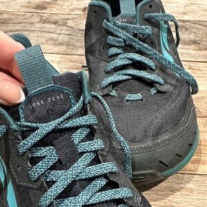 Sleek Altra athletic shoes. Black upper with teal accents. Durable and stylish.