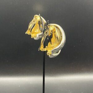 Vintage Heavyweight Clip On Earrings Sculptural Knot Two Tone Gold Silver Bold Weight 42g