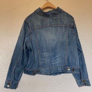 Avenue Jeans Distressed Embroidered Denim Jacket Size 14/16