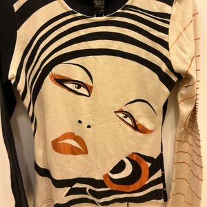 vintage Custo Barcelona long-sleeve Artistic Black and Cream top shirt 1 nwt