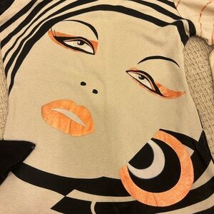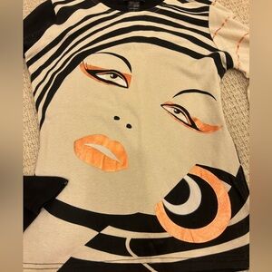 vintage Custo Barcelona long-sleeve t-shirt with a graphic face print. Size 1 . Good condition. Item only stored. Stand out with this artistic women's top featuring a striking face design. The black and cream colors create a bold look, perfect for any occasion.