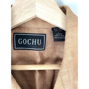 Gochu Linen Menta Button Down Short Sleeve Collard Shirt Brown Size Large