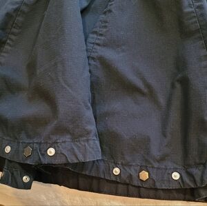 Women's size large black cotton midi skirt. Studding details on hem. Cargo pockets. Flare skirt with extra fabric. Side zip closure. Unlined. Fabric has a square graph pattern texture.