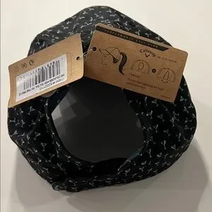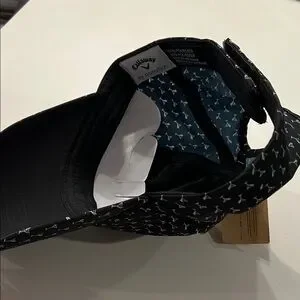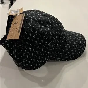 Chic Callaway cap featuring a black base with a white martini glass pattern. Tangle free opening for high ponytail or bun. Ideal for golf lovers.
