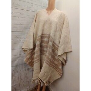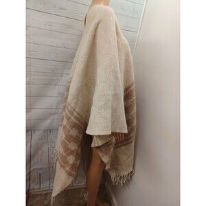 Vtg Alpaca Wool Llama Embroidered Poncho Cape Fringe Cloak O/S 55"x77"