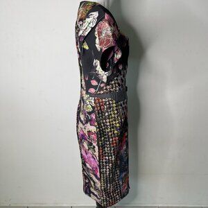 Byron Lara Women's Black Pink Short Sleeve Abstract Print Shift Dress Size 8