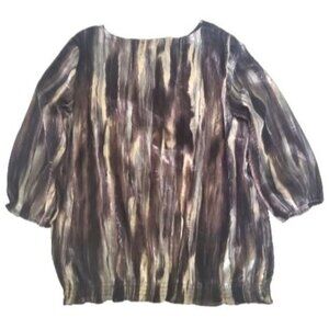 Chicos Women's Metallic Luxe Sheer 3/4 Sleeve Crinkled Blouse Size XL