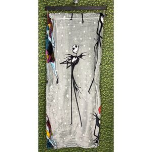 Cozy up with this festive Disney Nightmare Before Christmas plush throw featuring Jack Skellington and Sally in a snowy winter scene. The ultra-soft gray fleece makes it perfect for movie nights, holiday décor, or gifting to any NBC fan.