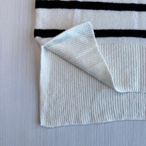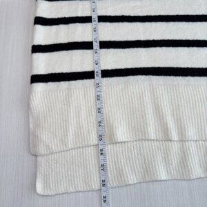 New without tags, this A New Day striped turtleneck sweater is a versatile neutral layer for the cooler seasons. The lightweight airy knit, timeless black-on-cream stripes, and tunic length with a split hem make it an easy choice for polished minimalist style.