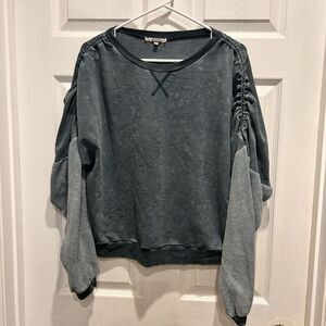 Buckle Gimmicks Green Ruched Drop Shoulder Acid Wash Mixed Media Sweatshirt M