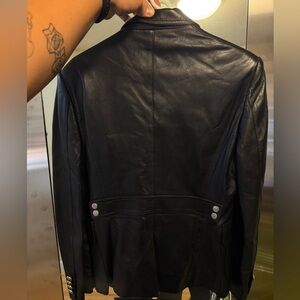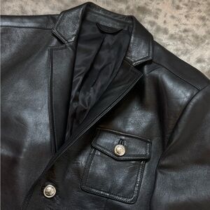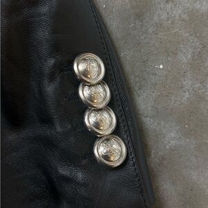 Gucci Women’s Black Leather Blazer Silver Buttons Size 46 Made in Italy