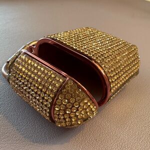 Sparkling gold rhinestone AirPods case. Includes a convenient clip for easy attachment.