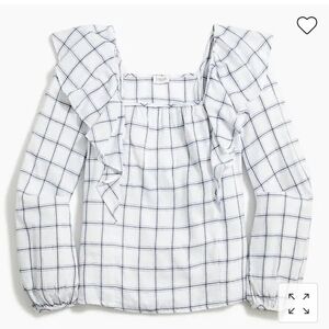 NEW J. Crew Factory Flannel Square Neck Ruffle Top Antique White Lightweight