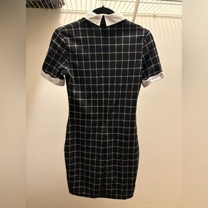 Chic and polished, this black and white checkered mini dress is perfect for work, brunch, or going-out looks. Features a fitted silhouette that flatters your shape, with a contrast white collar and sleeve cuffs for a classic, preppy touch.