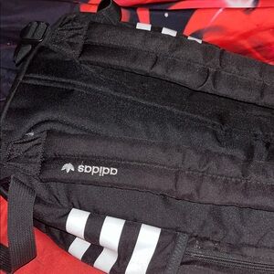 Sleek Adidas backpack with iconic logo. Spacious main compartment. Comfortable straps for easy carrying.