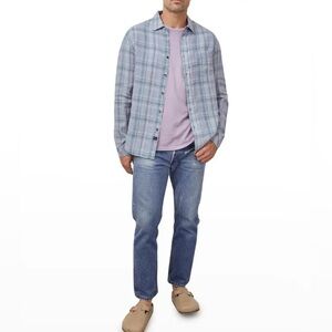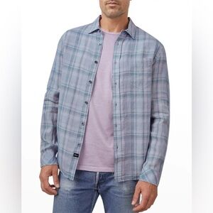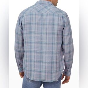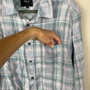 New Rails Mens Havana Plaid Denim Sport Shirt Linen Button Front Long Sleeve S