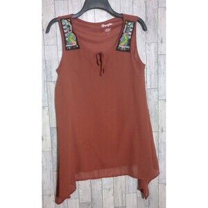 Wrangler Beaded Tank Top Keyhole Tie Neck Rust Flowy Western Pullover Size Small