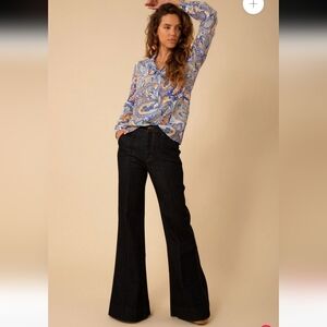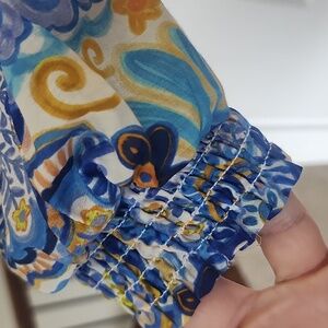 Hale Bob Paisley Print Women's Top - Blue and Yellow Med