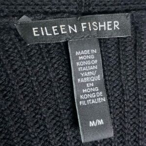 Eileen Fisher Extra Fine Merino Wool Cardigan Sweater Black Gray Size M Longline