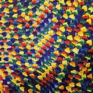 Handmade Rainbow Colored Afghan Throw Blanket Approx 53” X 50” Bright Colors