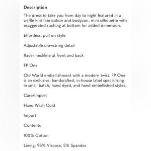 FREE PEOPLE One Thermal Mini Dress Size Large