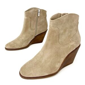 NEW Lucky Brand Wadier Booties Size 7.5 Wedge Heel Tan Suede Ankle Boots New