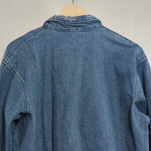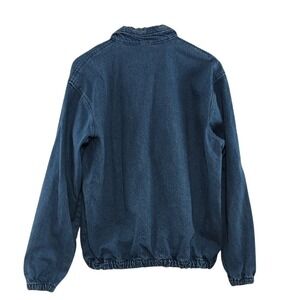 Clean, and in excellent vintage condition. Very minor denim pulls at the wrist and shoulder, that are not holes or rips. Elasticated wrist cuffs and jacket hem. Made in the USA. Vintage YKK bronze zipper. Mid-weight, unlined. 100% Cotton. Relaxed, boxy fit.