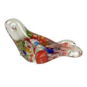 Art Glass Bird Figurine Orange Multicolor Paperweight Shelf Decor