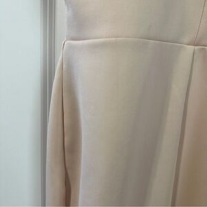 Gorgeous pale pink knee length dress. Has spaghetti straps, bodycon silhouette, and back vent.
