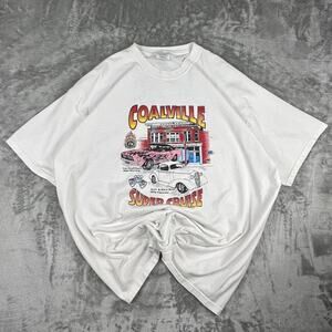 coalville graphic, vintage cars, classic vehicle, 2000s t-shirt, automotive print, white graphic tee, oversized, retro style, car enthusiast, bouleferes