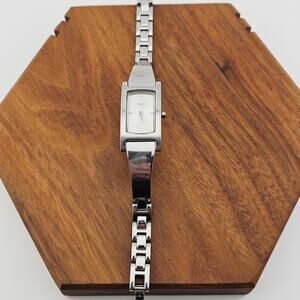 Guess Silver Tone Rectangle Watch Sleek Minimalist Bracelet Link Band G66401L