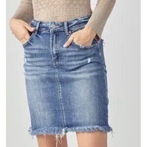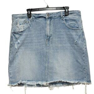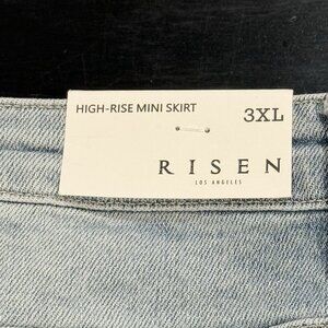 NWT RISEN JEANS Distressed Raw Frayed Edge Stretch Blue Denim Mini Skirt Sz 3X