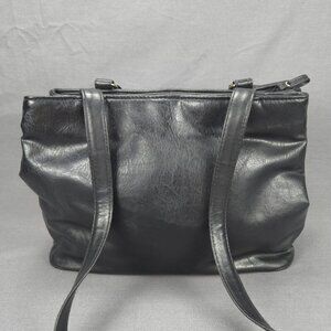 TR Bentley Black Faux Leather Tote Shoulder Bag Zip Pocket