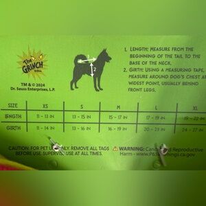 THE GRINCH Dog Hoodie Pet Sweatshirt Size Large