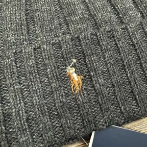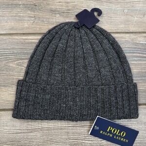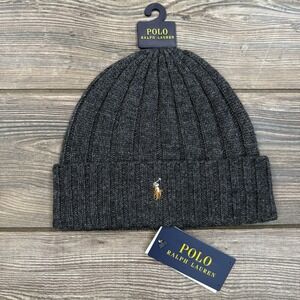 Polo Ralph Lauren Signature Merino Wool Blend Cuffed Beanie Charcoal Gray New